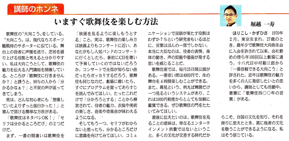 堀越一寿(ほりこし・かずひさ) 『歌舞伎を見て 自国の文化を誇れる自分に』 |